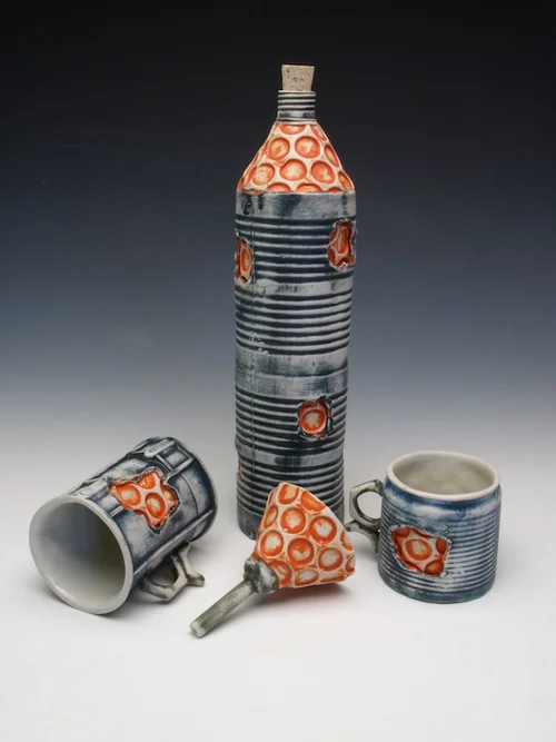This work represents a change in both my process and approach toward utility focused ceramics. Like many ceramic artists, my introduction to ceramics began with learning to work on the potter's wheel, which was satisfying and delightful for many years but always felt a little bit like a foreign language to me. I wouldn't say I was entirely illiterate on the potter's wheel, but I was never really able to precisely express my intentions on the potter's wheel either.